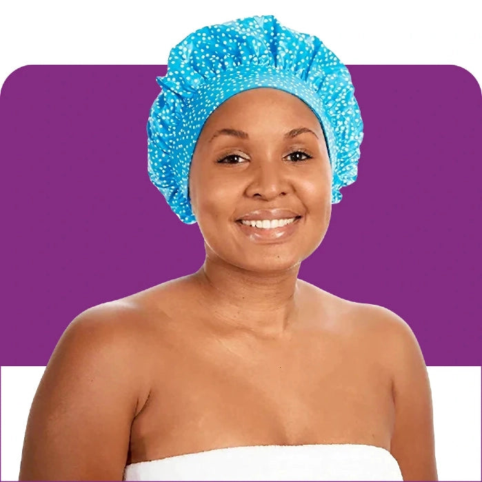Upgrade your shower cap! The revolutionary patented design allows this luxury shower cap to fully eliminate water, humidity and frizz. TIARA keeps your hair dry in the bath or shower so you can protect your blowout in style. One size fits all.