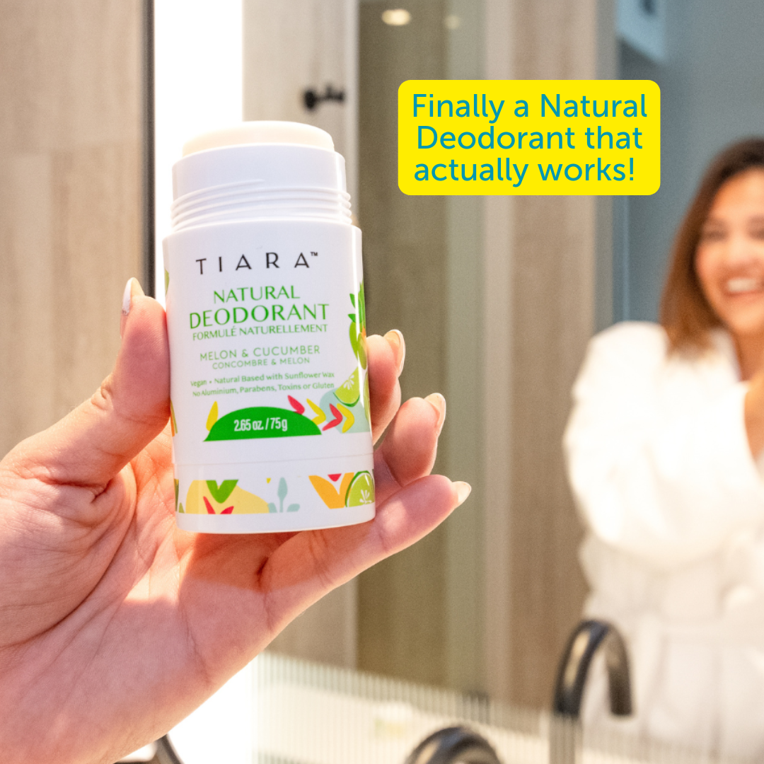 TIARA Natural deodorant is an all-natural deodorant free of aluminum, parabens, triclosan, and other toxins we can’t even pronounce. Made with natural ingredients, it's safe and gentle for daily use, perfect for all skin types